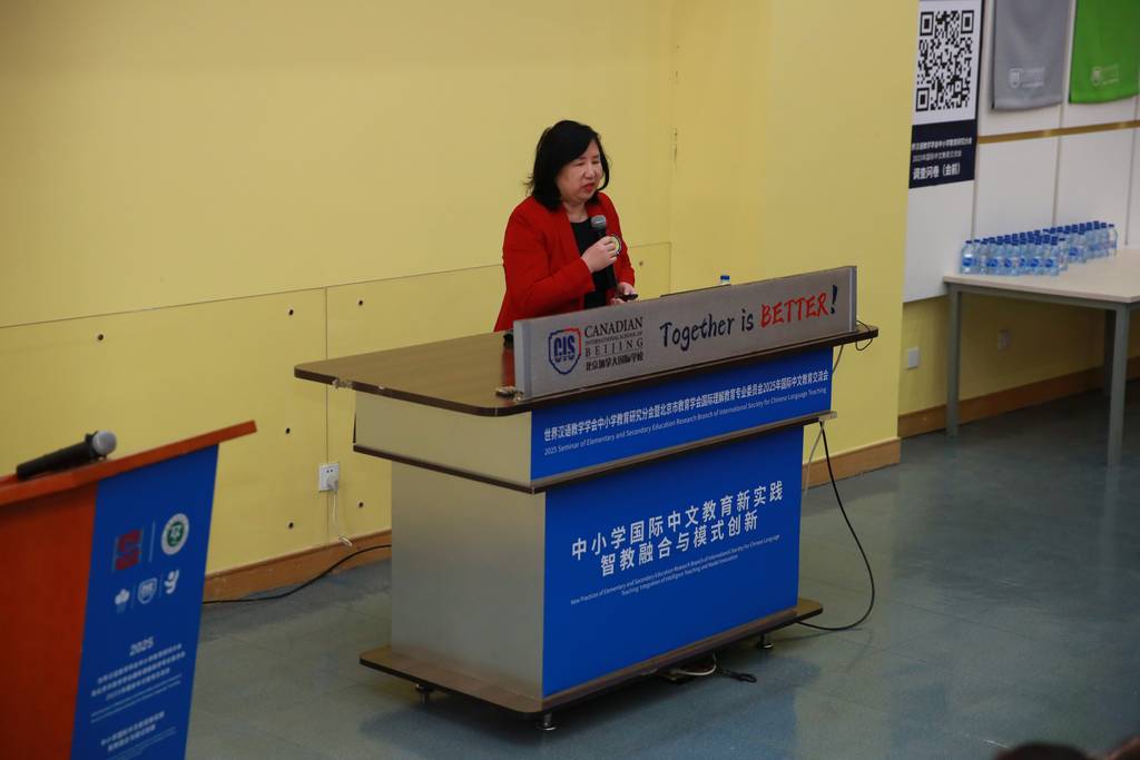 主旨报告环节聚焦国际中文教育的数智化转型与跨文化实践。北京语言大学汉语国际教育研究院副院长姜丽萍教授以《人工智能赋能语音教学资源建设与教学模式创新》为题,从人工智能技术引发的教育教学范式变革、汉语语音资源库的构建逻辑与应用路径、“汉风语音通” 平台支撑下的语音教学创新案例及未来国际中文教师的核心素养发展四个维度,系统阐释了数智赋能理念下人工智能技术与国际中文教育深度融合的教学实践范式,为技术赋能型中文教育的发展提供了理论支撑与实践参考。美国国际文教学会创始人及执行长黄丽娟博士以《美国中文教育发展现状与教学实践》为题,全面梳理了近年来美国中文教育的政策环境、发展态势、教学模式创新及实践成效。通过展示全美国大中小学生中文学习优秀成果、一线教师成功教学案例的视频与图文资料,多维度解析了高效课堂教学的实施路径、跨文化教学成果的转化机制及多元化文化教学活动的设计策略,为国际中文教育的跨文化实践提供了有益借鉴。