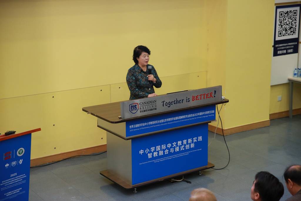 主旨报告环节聚焦国际中文教育的数智化转型与跨文化实践。北京语言大学汉语国际教育研究院副院长姜丽萍教授以《人工智能赋能语音教学资源建设与教学模式创新》为题,从人工智能技术引发的教育教学范式变革、汉语语音资源库的构建逻辑与应用路径、“汉风语音通” 平台支撑下的语音教学创新案例及未来国际中文教师的核心素养发展四个维度,系统阐释了数智赋能理念下人工智能技术与国际中文教育深度融合的教学实践范式,为技术赋能型中文教育的发展提供了理论支撑与实践参考。美国国际文教学会创始人及执行长黄丽娟博士以《美国中文教育发展现状与教学实践》为题,全面梳理了近年来美国中文教育的政策环境、发展态势、教学模式创新及实践成效。通过展示全美国大中小学生中文学习优秀成果、一线教师成功教学案例的视频与图文资料,多维度解析了高效课堂教学的实施路径、跨文化教学成果的转化机制及多元化文化教学活动的设计策略,为国际中文教育的跨文化实践提供了有益借鉴。